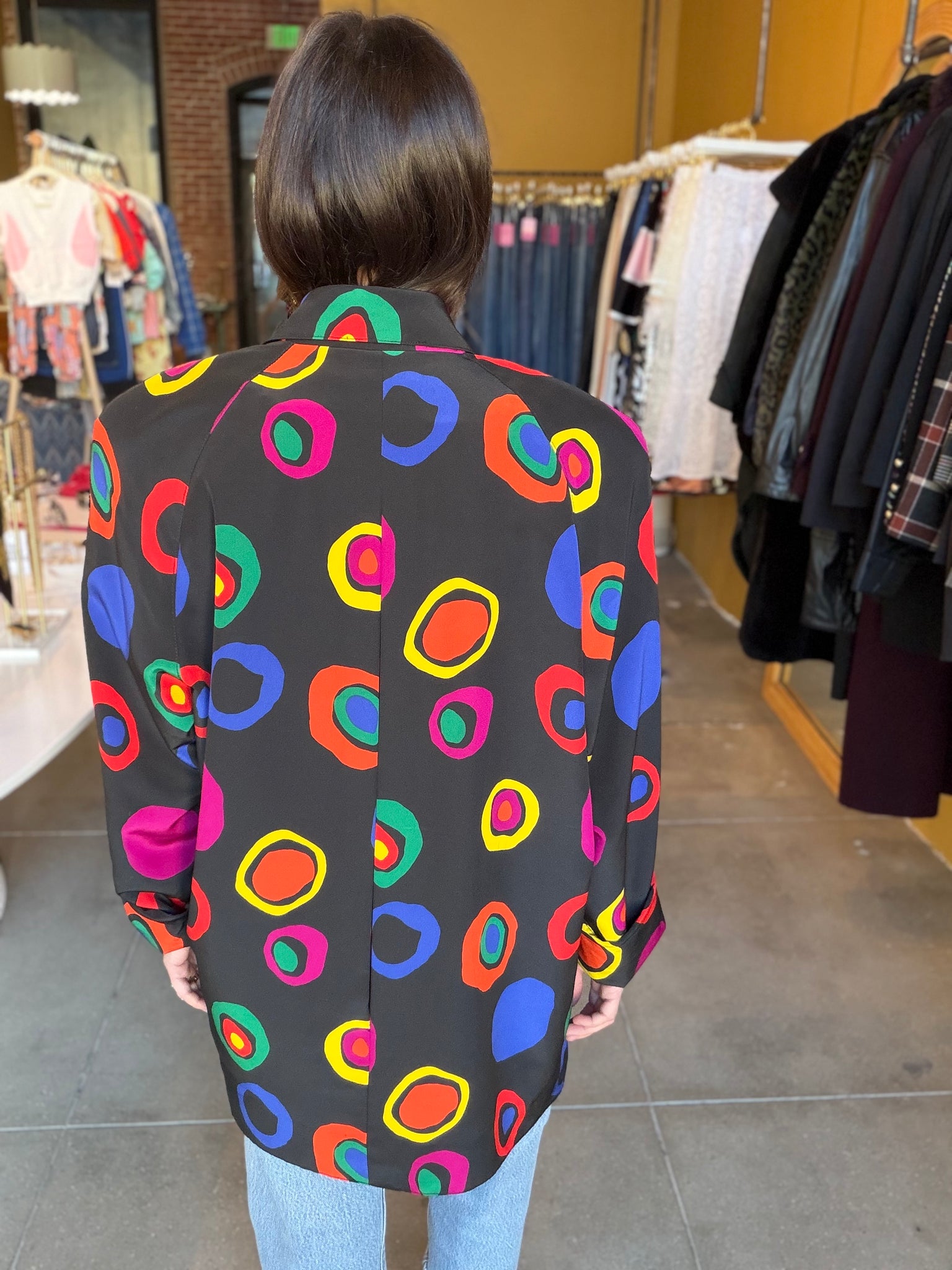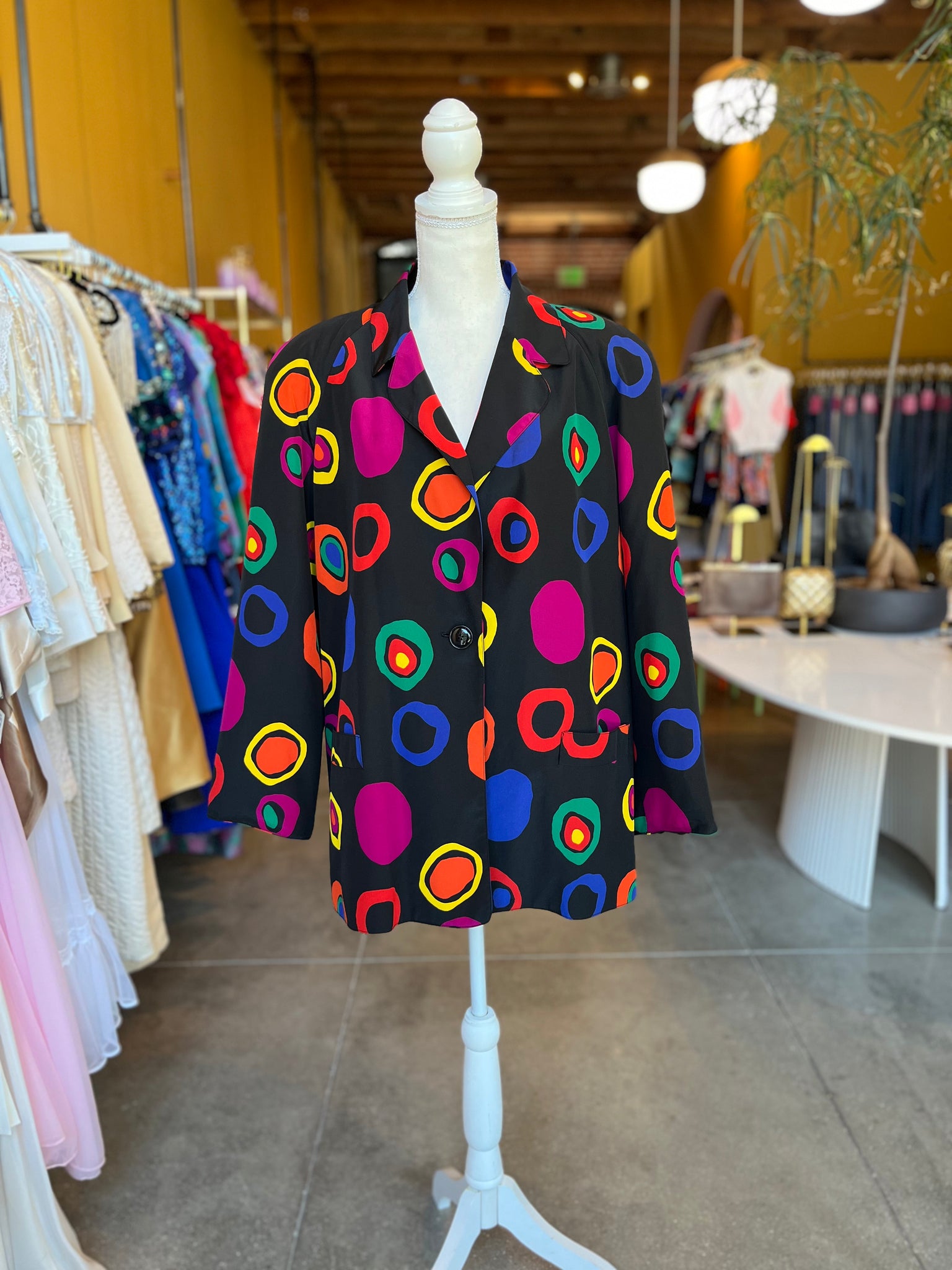 Perfectly fun blazer with multi-color dots and spots. Great used condition, no flaws. *Belt sold separately