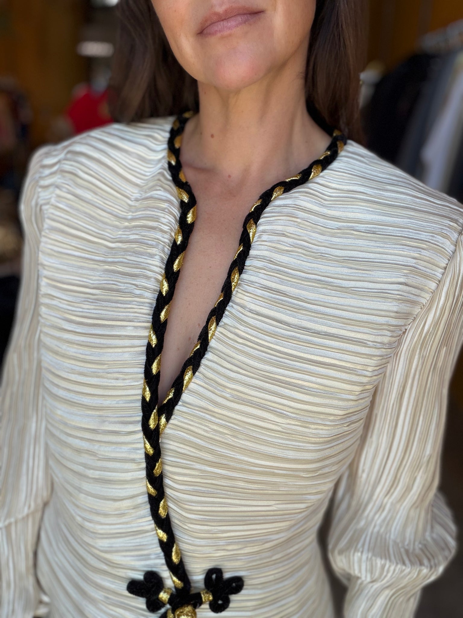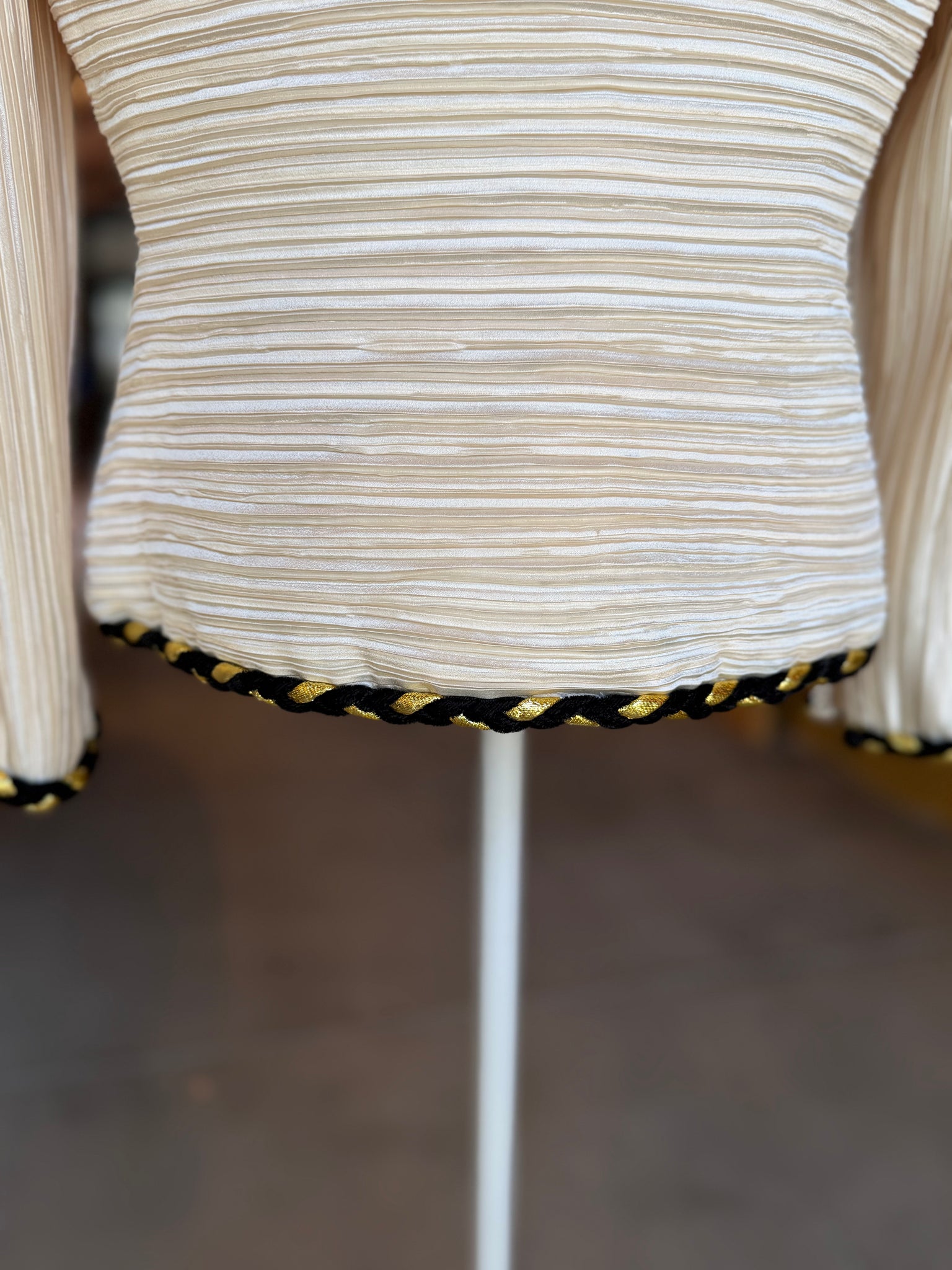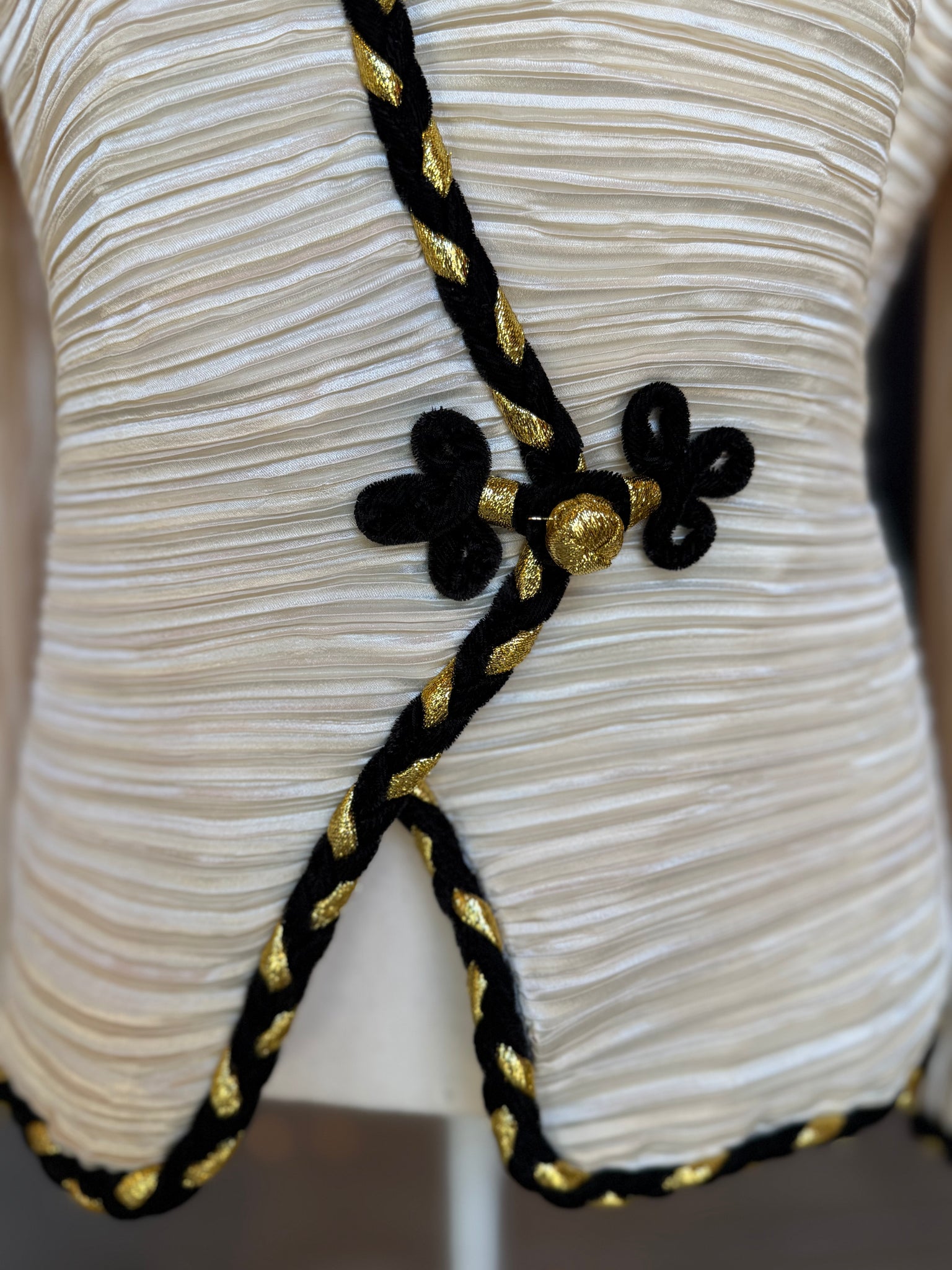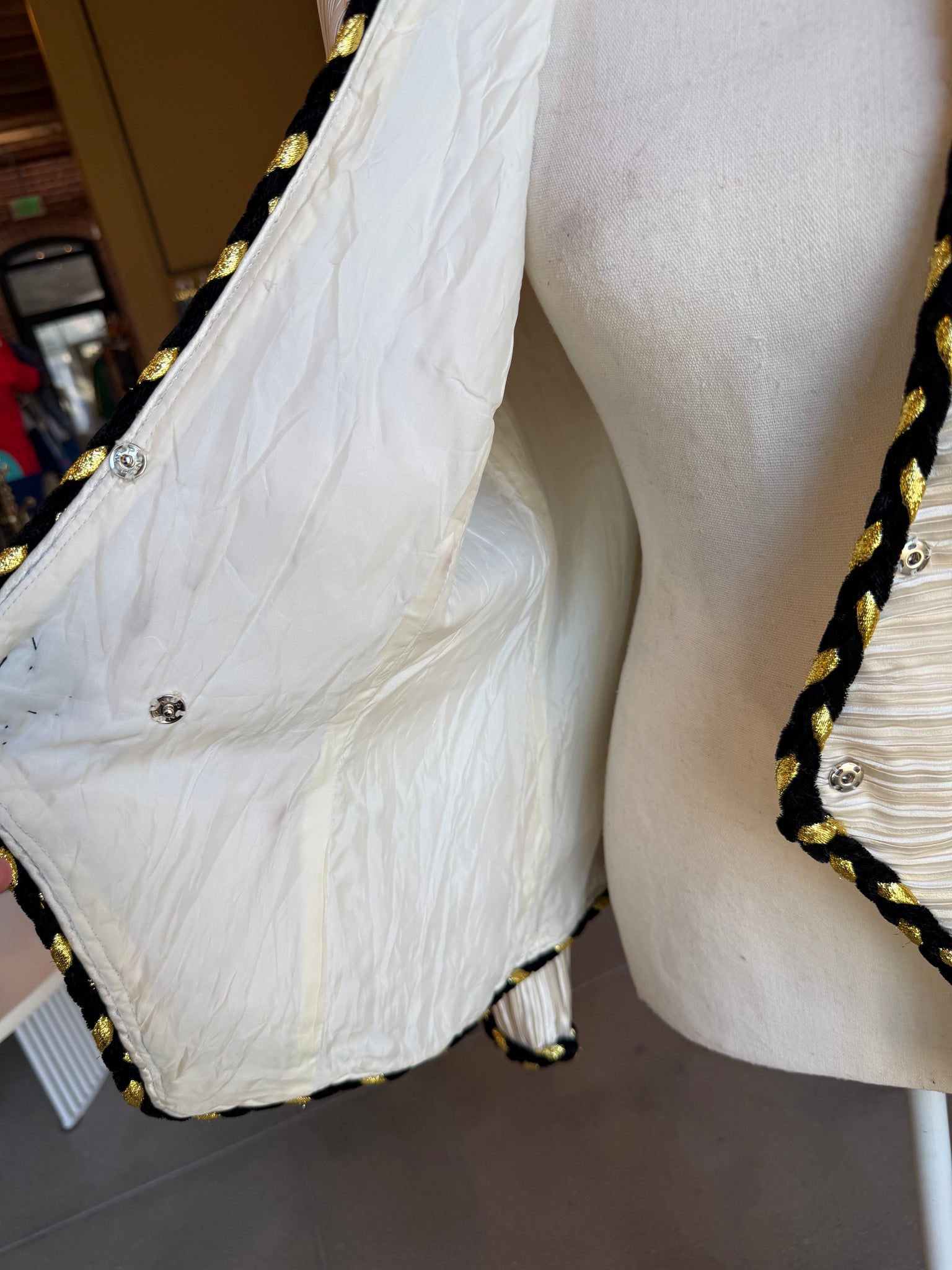 Gorgeous vintage plissè jacket with velvet and gold lamè trim. Excellent used condition, no flaws.