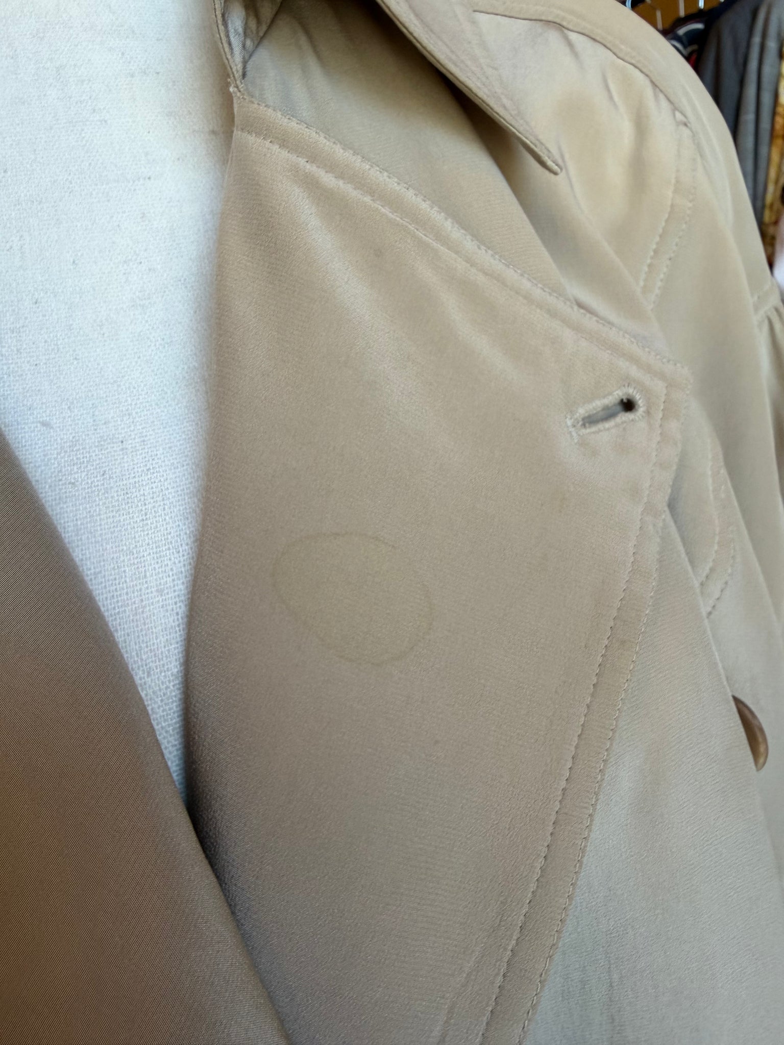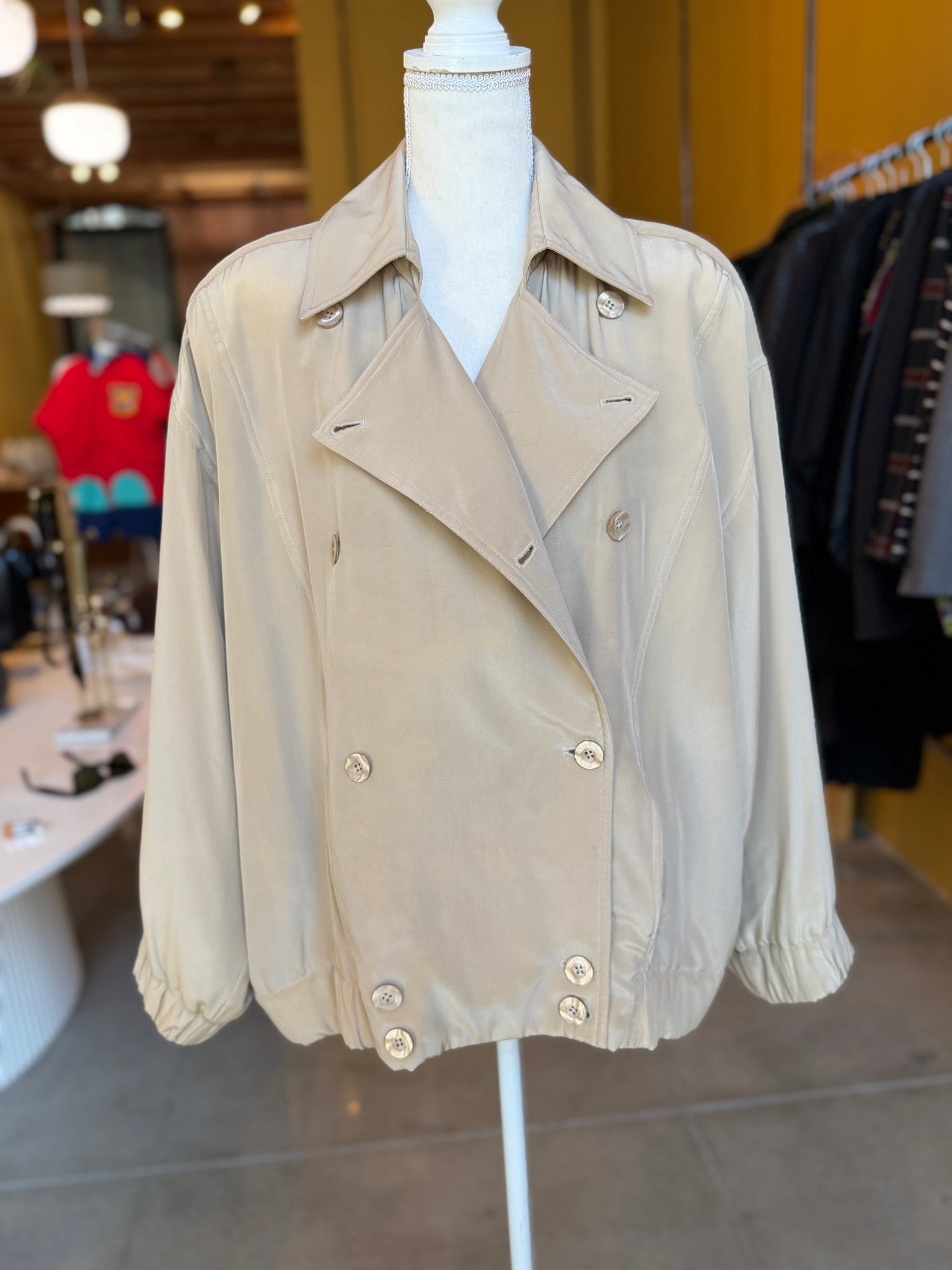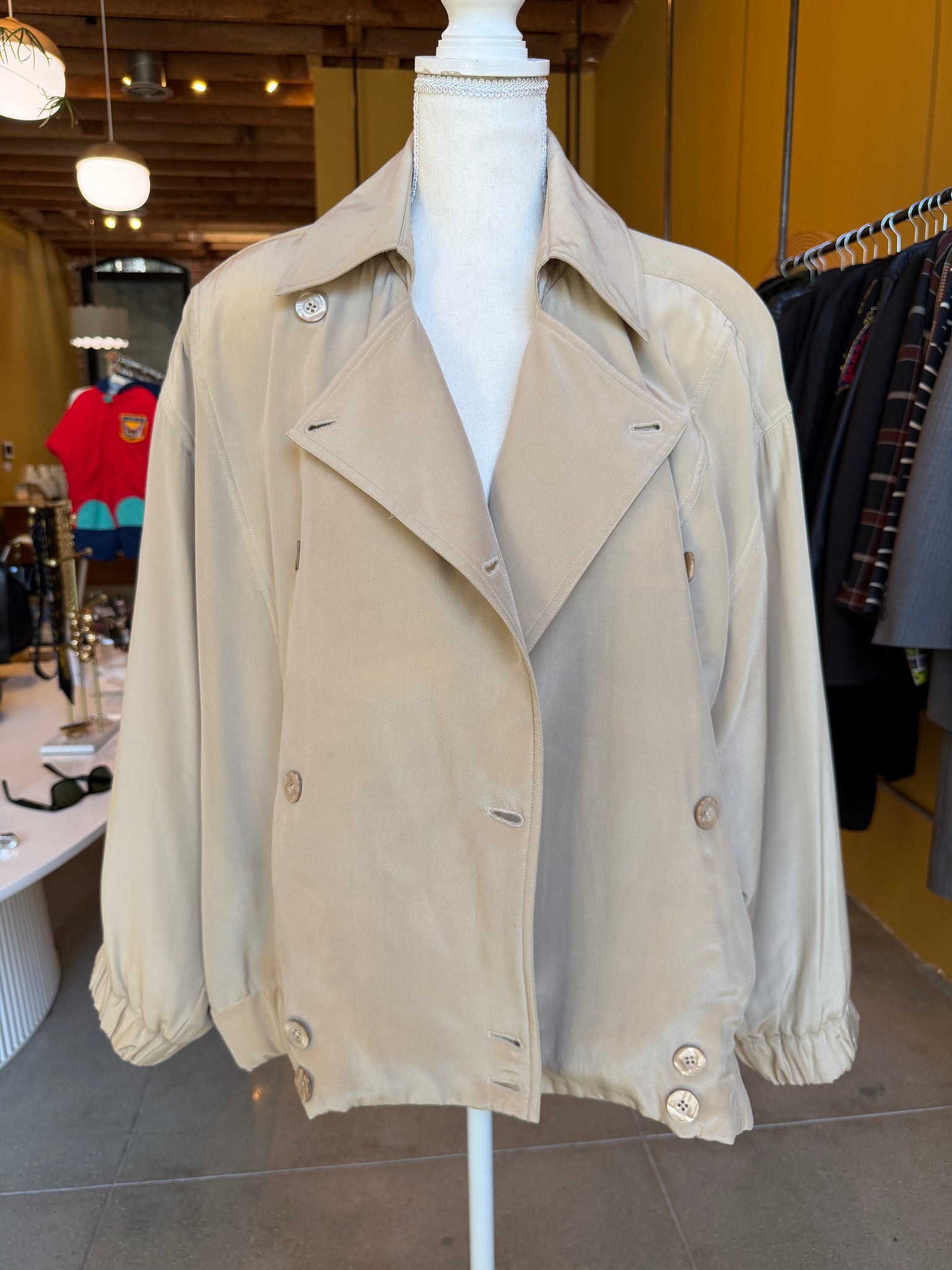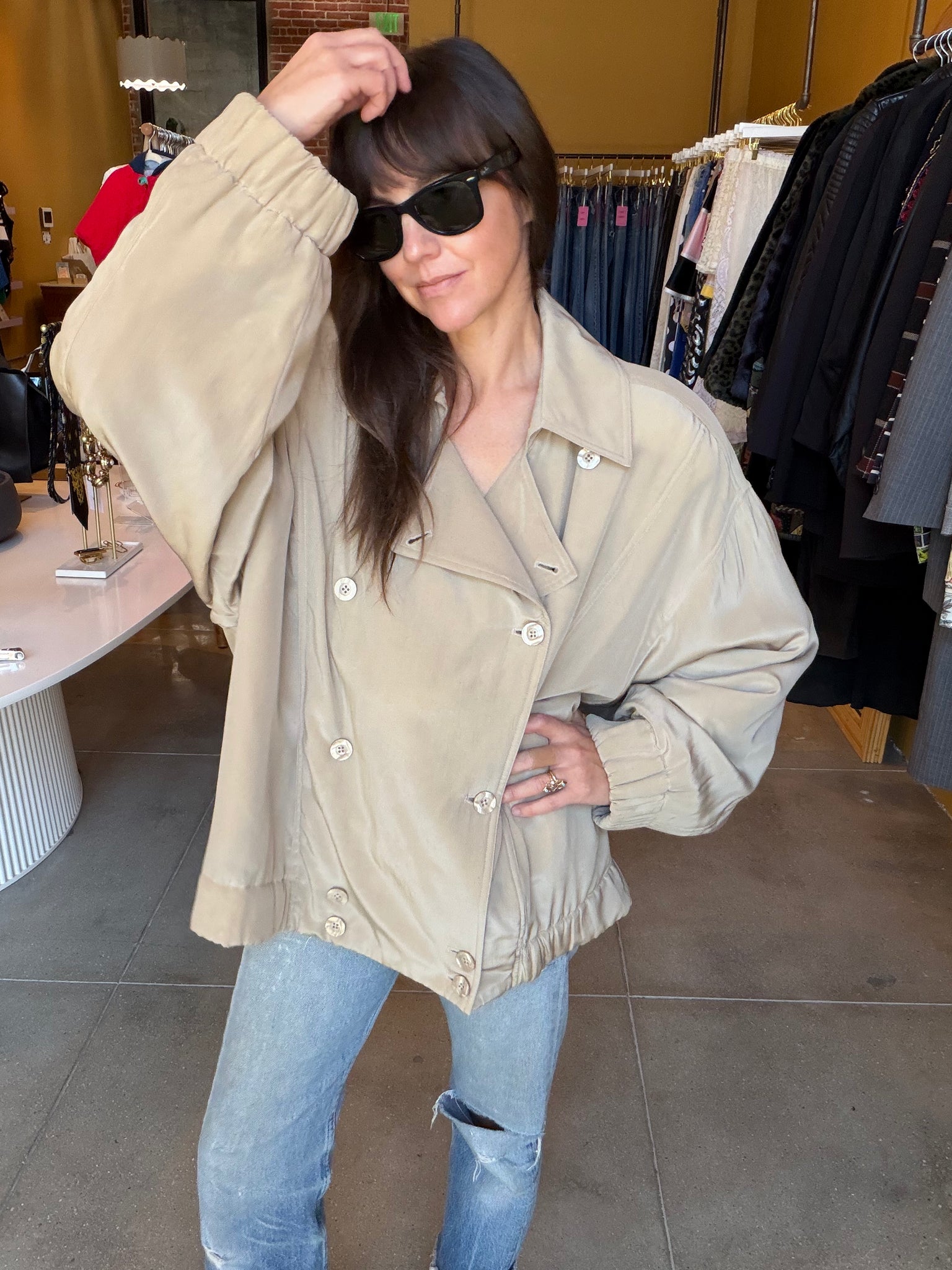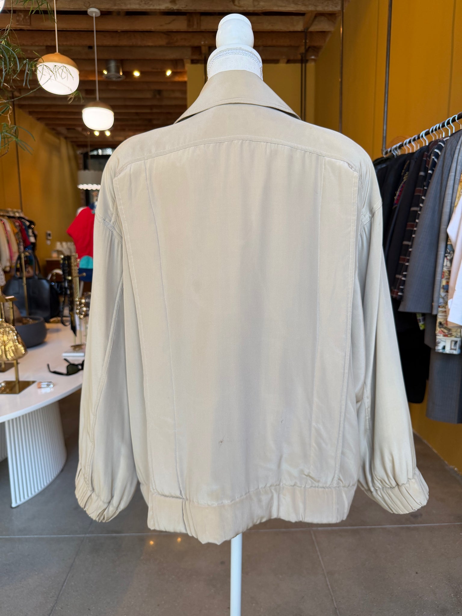 Incredible vintage silk, double breasted bomber jacket. *Has been dry cleaned, but some stains were not able to be removed, as pictured.