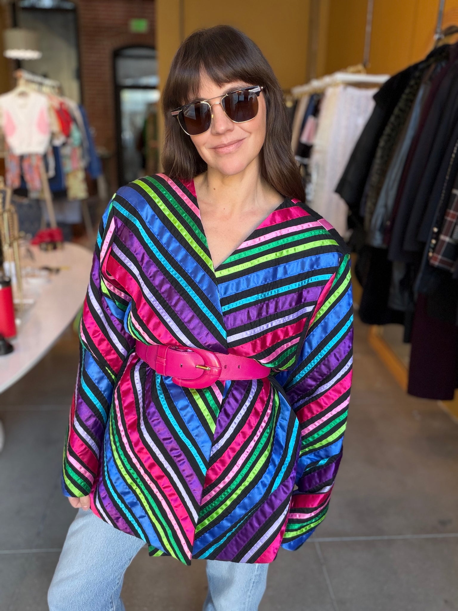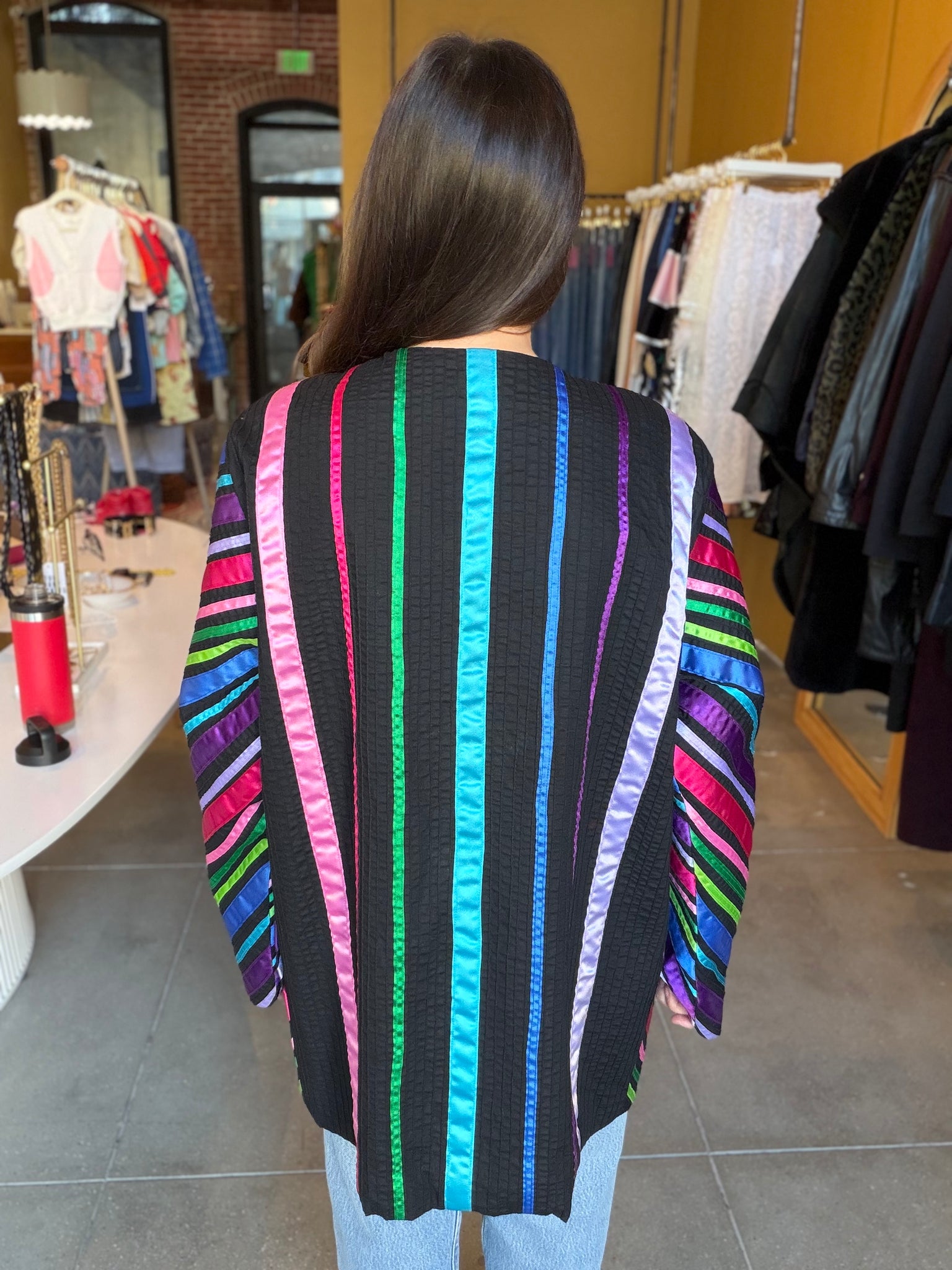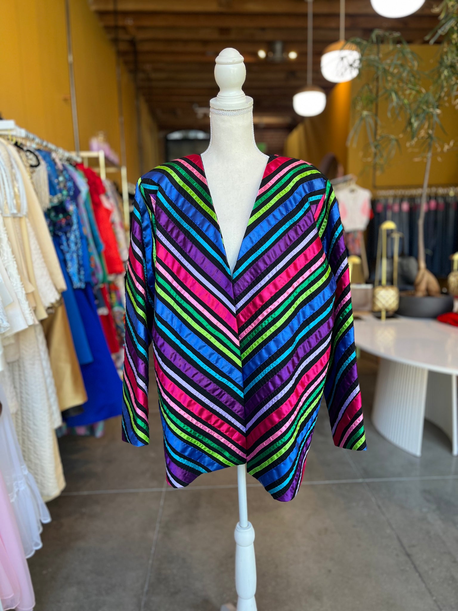 Archival quilted statement piece from the cult New York designer known for his ultra-glam jackets worn in Y2K club culture. This is art you can wear, truly a rare collector's piece. No buttons, worn open.