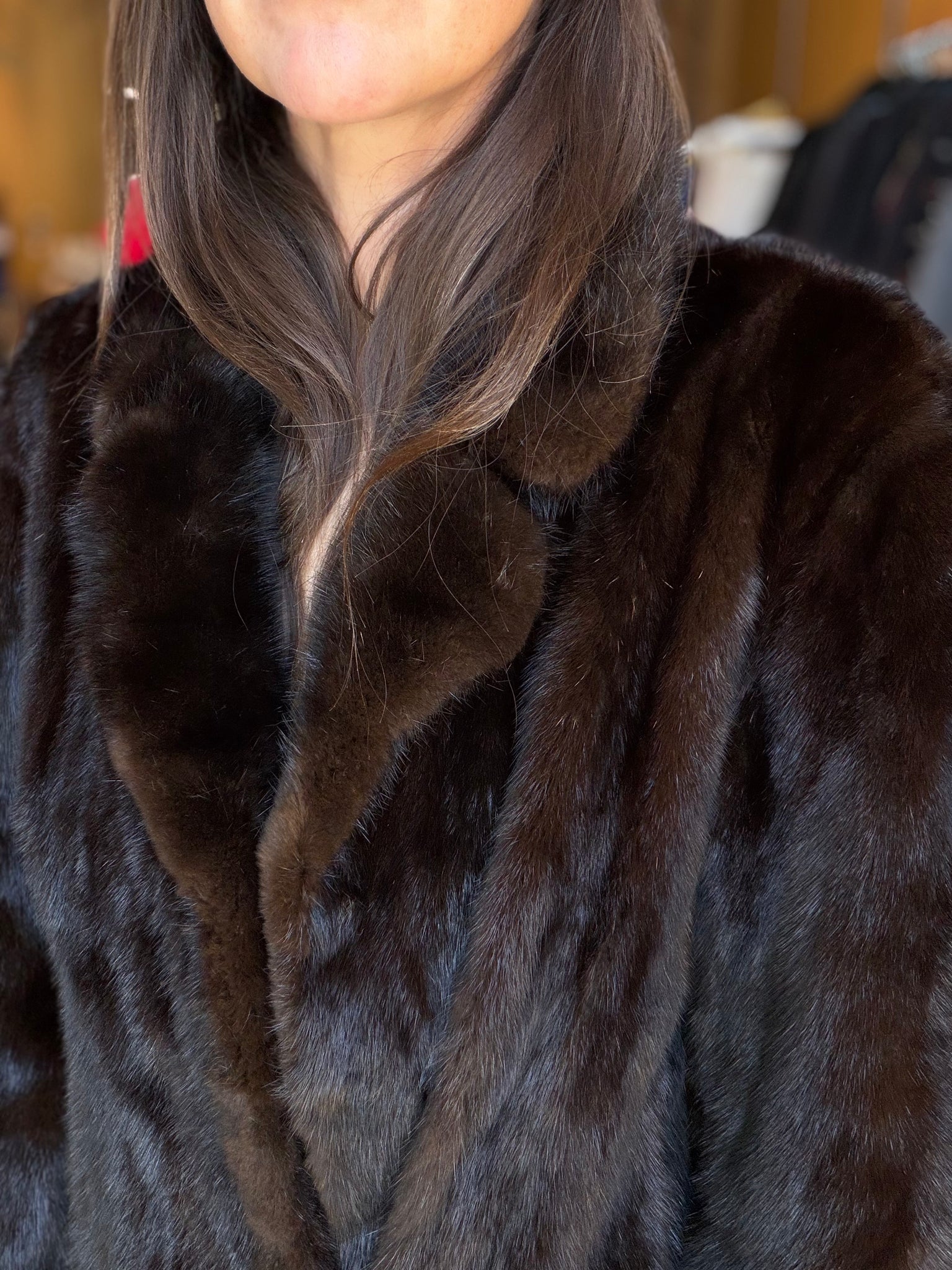 Incredible vintage mink coat from Schlampp's in Minneapolis. Has only had one owner, Helen K. Andersen, which is embroidered inside the lining of coat. Fur is in impeccable condition.